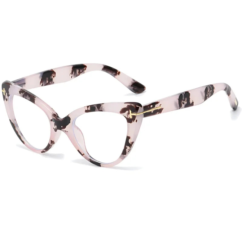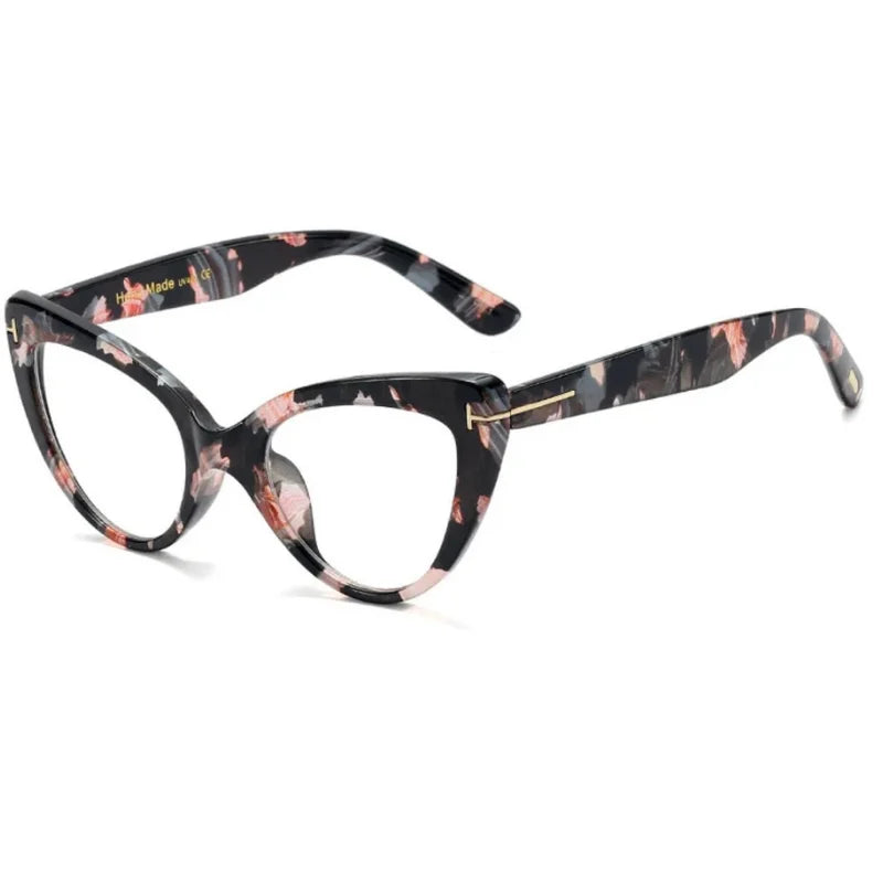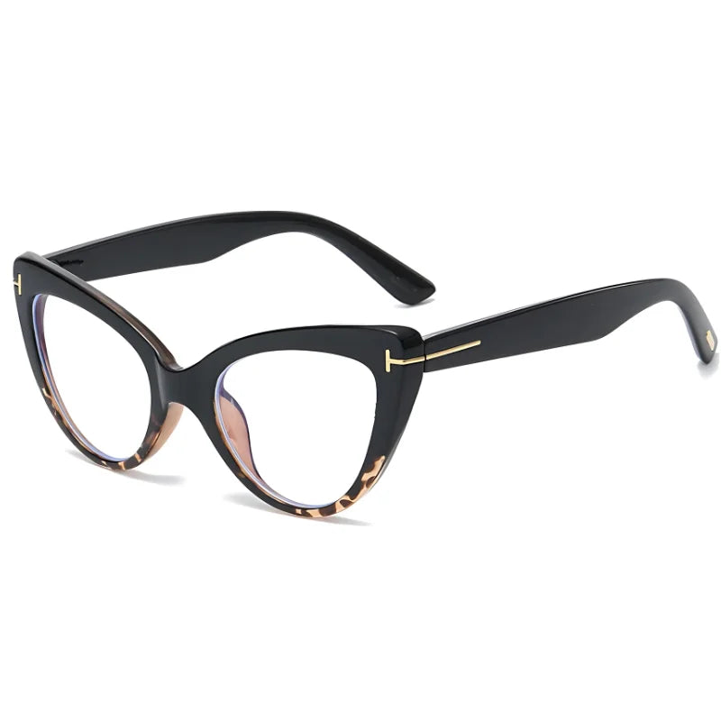 Esta montura tiene un diseño cat-eye definido y elegante, con líneas marcadas que aportan un aire sofisticado y femenino. Su estructura gruesa resalta la mirada, mientras que los detalles metálicos en las varillas añaden un toque de distinción moderna. Perfecta para quienes buscan un estilo audaz con mucha personalidad.