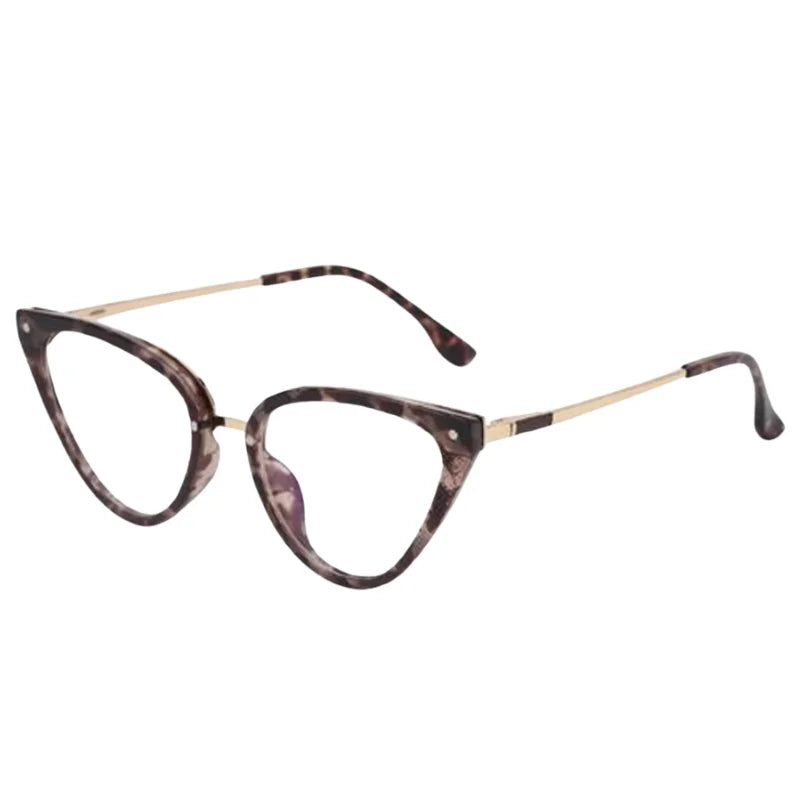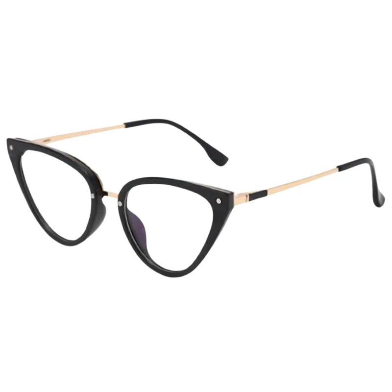 Esta montura presenta un diseño en forma de ojo de gato con bordes definidos que aportan un aire retro y femenino. El frente en acetato se combina con varillas metálicas delgadas, creando un contraste equilibrado entre lo clásico y lo moderno.