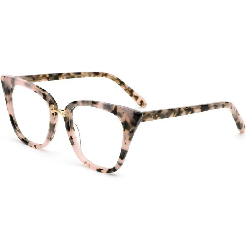 Montura estilo carey en tonos suaves rosados con un diseño cat-eye que mezcla feminidad y carácter. Ideales para un look moderno, delicado y con mucha personalidad.