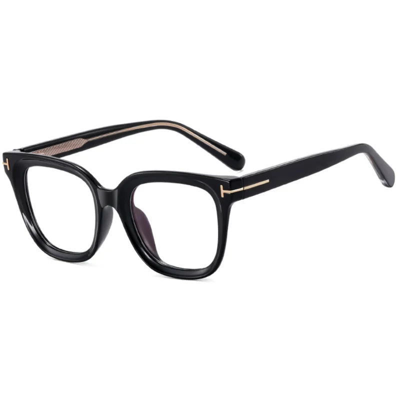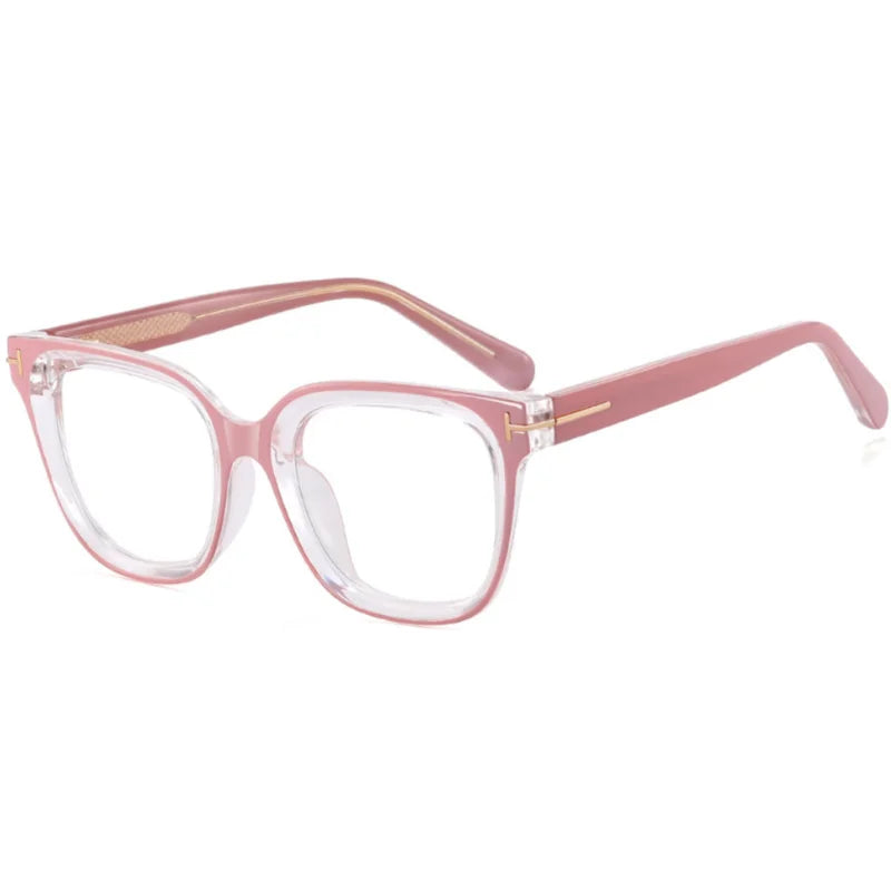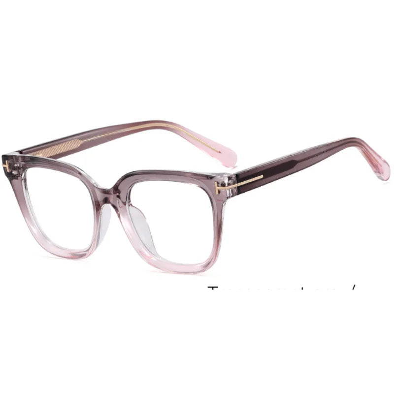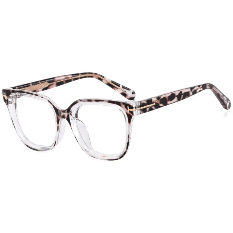 Esta montura tiene un diseño cuadrado con bordes definidos, combinando un frente transparente que aporta frescura con varillas de estilo estampado que le dan personalidad. Es un modelo llamativo y versátil, perfecto para quienes buscan algo diferente pero elegante al mismo tiempo.
