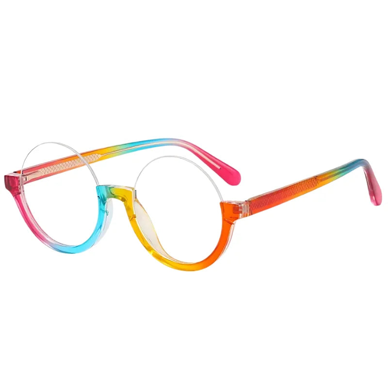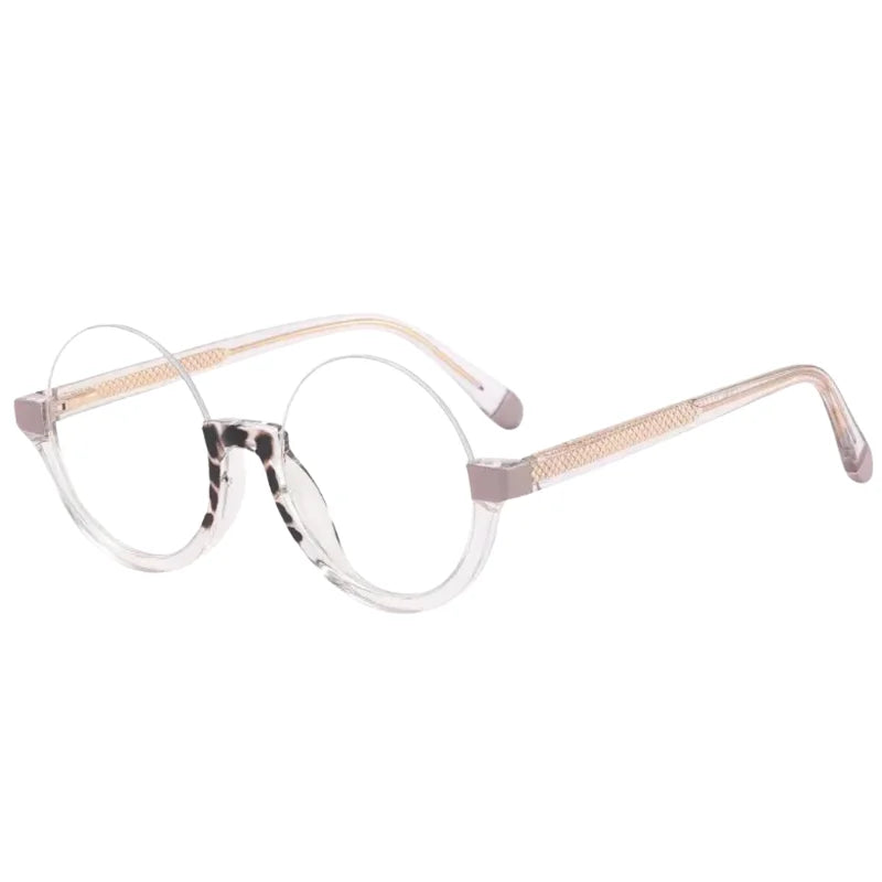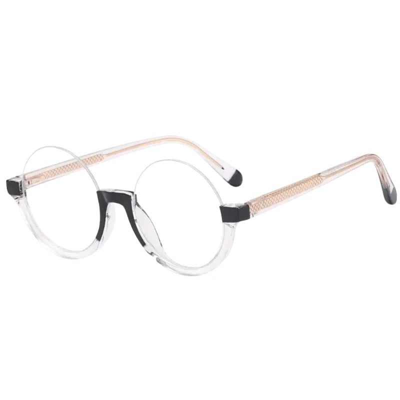 Montura de forma redonda oversize con un diseño llamativo y estructurado. El frente combina un estilo retro con un puente ancho y elevado que aporta carácter y firmeza. Las varillas presentan un acabado texturizado con detalles metálicos que realzan la sofisticación del diseño. Un modelo que mezcla inspiración vintage con toques modernos, ideal para destacar con personalidad y estilo.