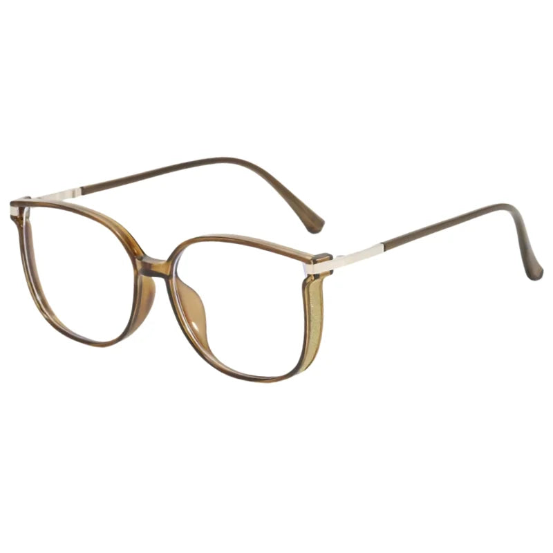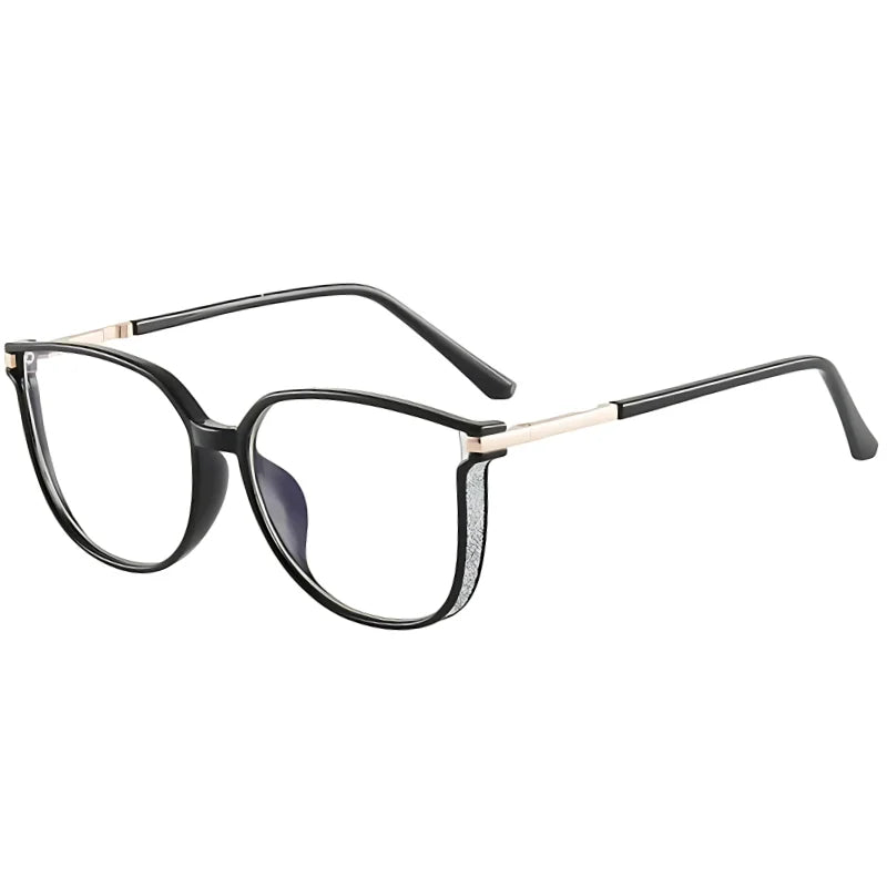 Montura en diseño mariposa con líneas suaves y varillas metálicas delgadas. Lo que la hace especial es su detalle de escarcha en los costados, que aporta un toque brillante y distintivo sin perder elegancia. Una opción moderna y sofisticada para resaltar tu estilo en cualquier ocasión.