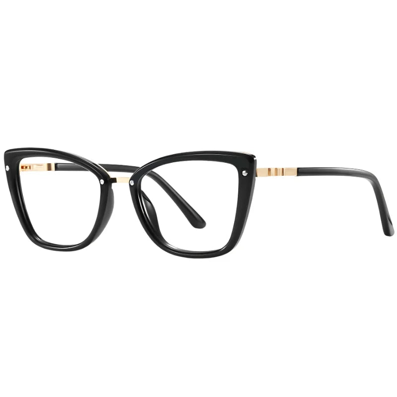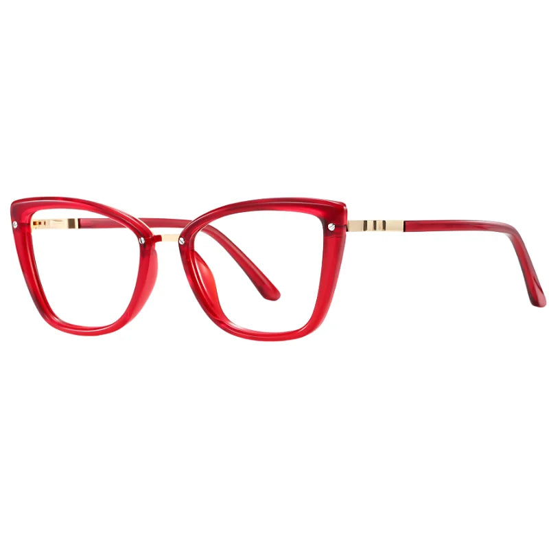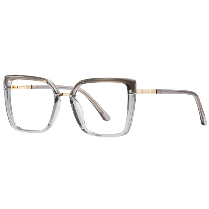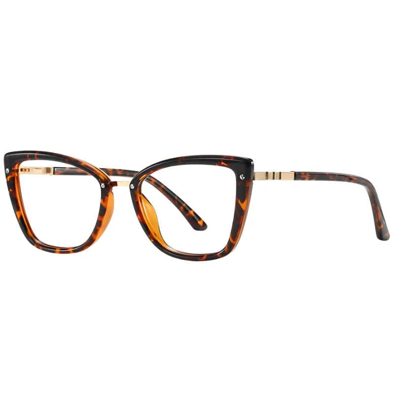 Esta montura tiene un diseño en forma de ojo de gato con ángulos definidos, que aporta un estilo sofisticado y femenino. Su frente amplio en acetato se combina con detalles metálicos en las varillas, creando un balance entre lo clásico y lo moderno. Es una opción ideal para quienes buscan un look elegante con un toque audaz y distintivo.
