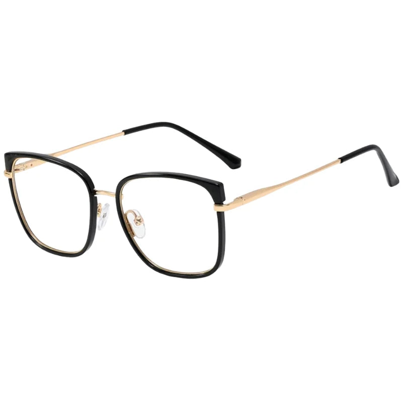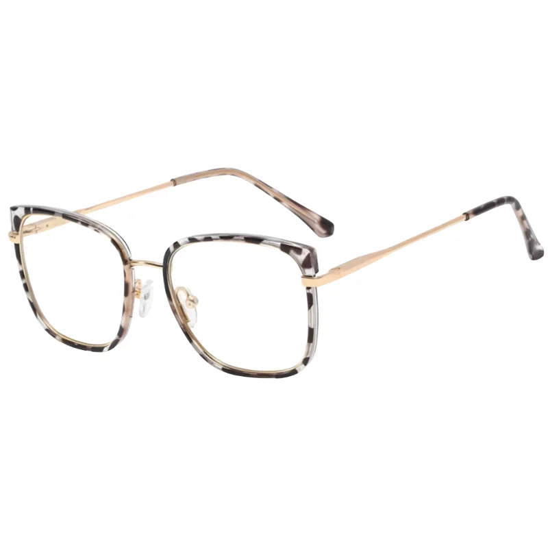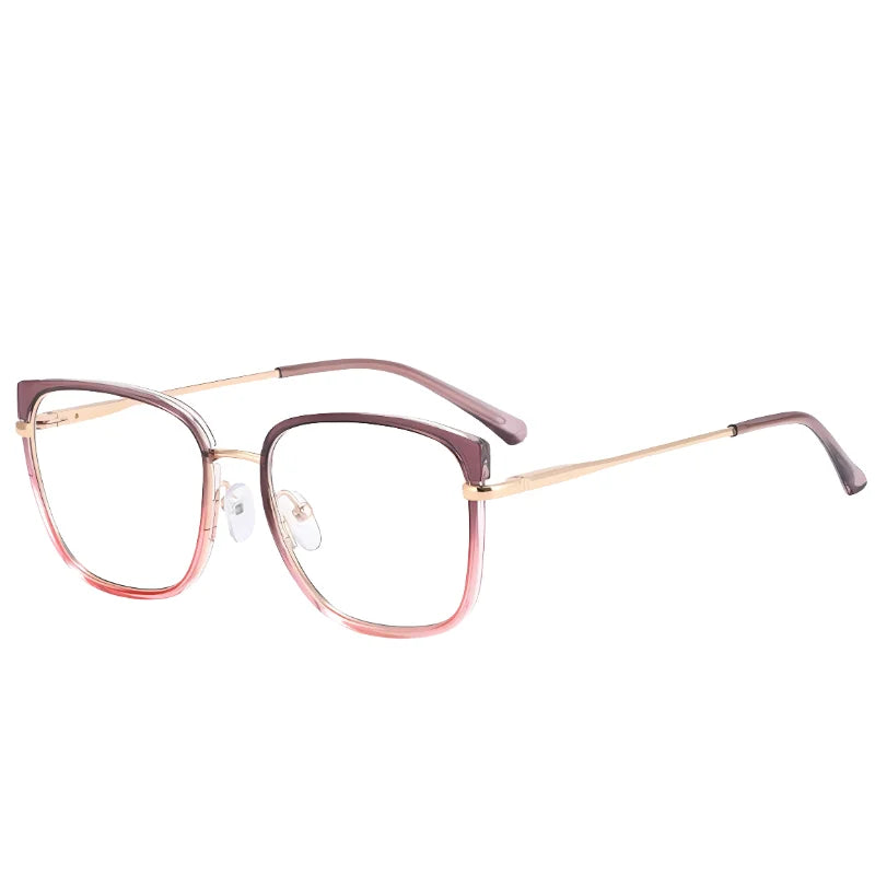Montura de forma cuadrada con bordes ligeramente redondeados que equilibran elegancia y modernidad. El diseño del frente es amplio y favorecedor, con un puente metálico delgado que aporta ligereza y un ajuste cómodo. Las varillas, finas y estilizadas, refuerzan su carácter sofisticado, convirtiéndola en una opción versátil para uso diario con un toque de distinción.