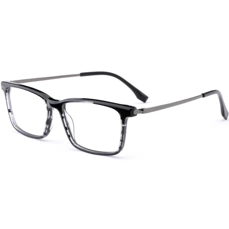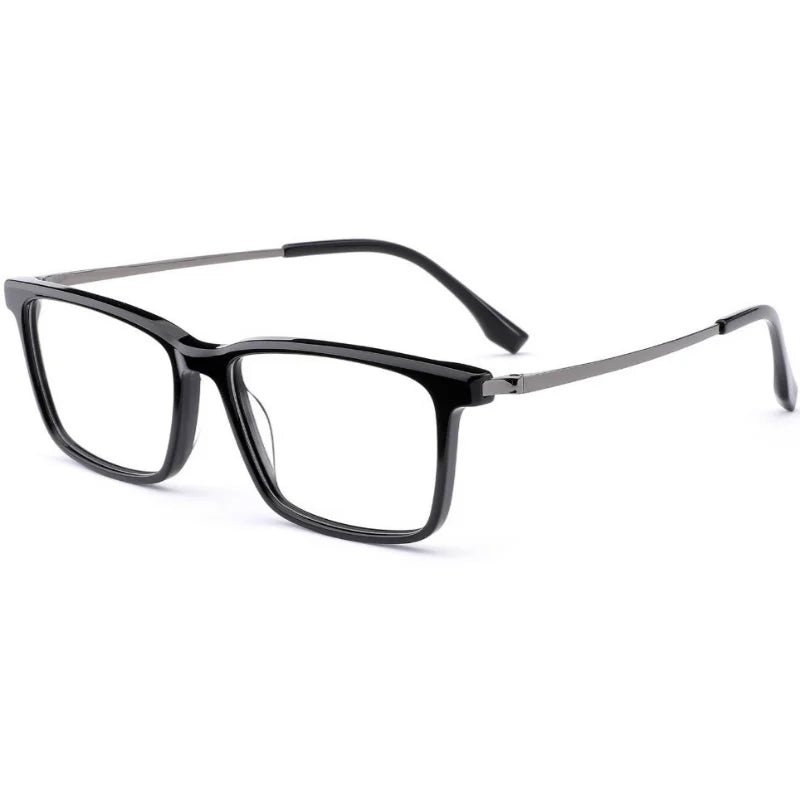 Elegancia en su máxima expresión: estas gafas rectangulares de montura negra y varillas metálicas ofrecen un estilo moderno y sofisticado. Perfectas para quienes buscan proyectar confianza y distinción en cada detalle.