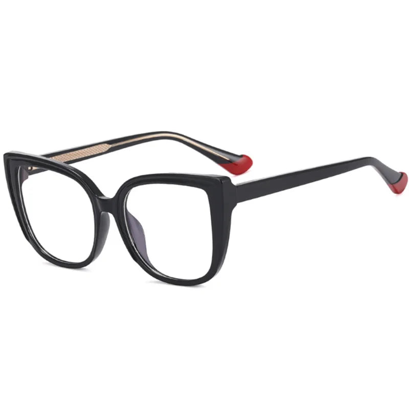 Esta montura tiene un diseño cuadrado con toques de cat-eye, lo que le da un aire moderno y elegante. Su estructura es gruesa pero ligera, ideal para resaltar facciones y dar un look sofisticado con un estilo actual.