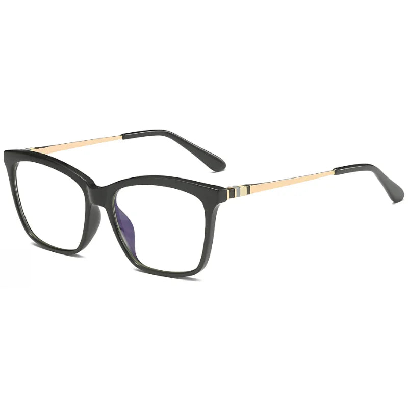 Esta montura tiene un diseño cuadrado amplio con bordes suaves, que le da un aire sofisticado y moderno. El frente sólido se combina con varillas delgadas en acabado metálico, lo que la hace ligera y elegante. Ideal para quienes buscan un estilo profesional con un toque de distinción.