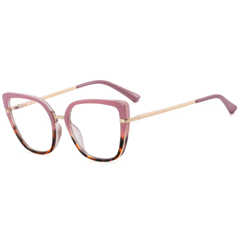 Montura de estilo cat-eye con diseño geométrico y varillas metálicas finas. Su estructura combina elegancia y modernidad, ofreciendo un look audaz y sofisticado ideal para destacar en cualquier ocasión.