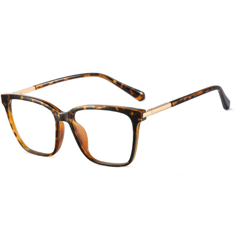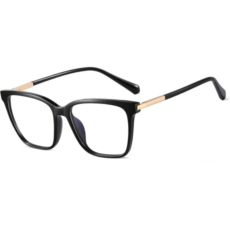 Montura de estilo cuadrado con bordes sutilmente estilizados y varillas metálicas que aportan un toque moderno y elegante. Un diseño versátil que combina sobriedad y sofisticación, ideal para un look actual y con carácter.