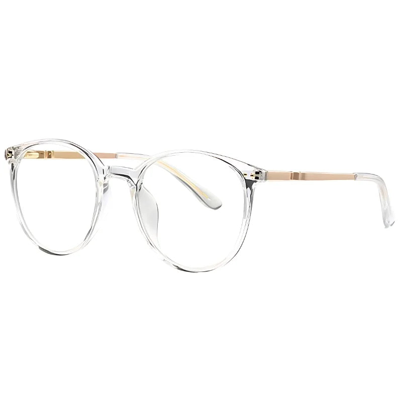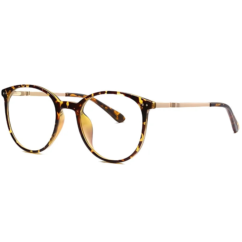 Esta montura tiene un diseño redondo ligeramente ampliado, con un estilo ligero y elegante gracias a sus varillas metálicas finas. Es un modelo versátil que combina un aire moderno con un toque retro, ideal para quienes buscan comodidad sin perder sofisticación.